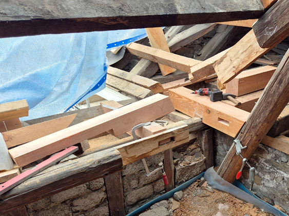 Schäden am Holz, hier am Traufpunkt des Dachstuhls.